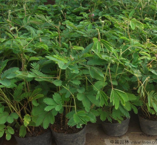 夏季炎熱干旱時應該早、晚各澆一次水,缺水則葉片會下垂以至發黃,受觸動也不再閉合。苗期每半月施追肥1次。如不想讓株形過大,則要減少施肥量。含羞草小葉細小,羽狀排列,甩手觸及小葉受刺激后,即行合攏,如震動大可使刺激傳至全葉,總葉柄也會下垂,甚至可能傳遞到鄰葉使其葉柄下垂。